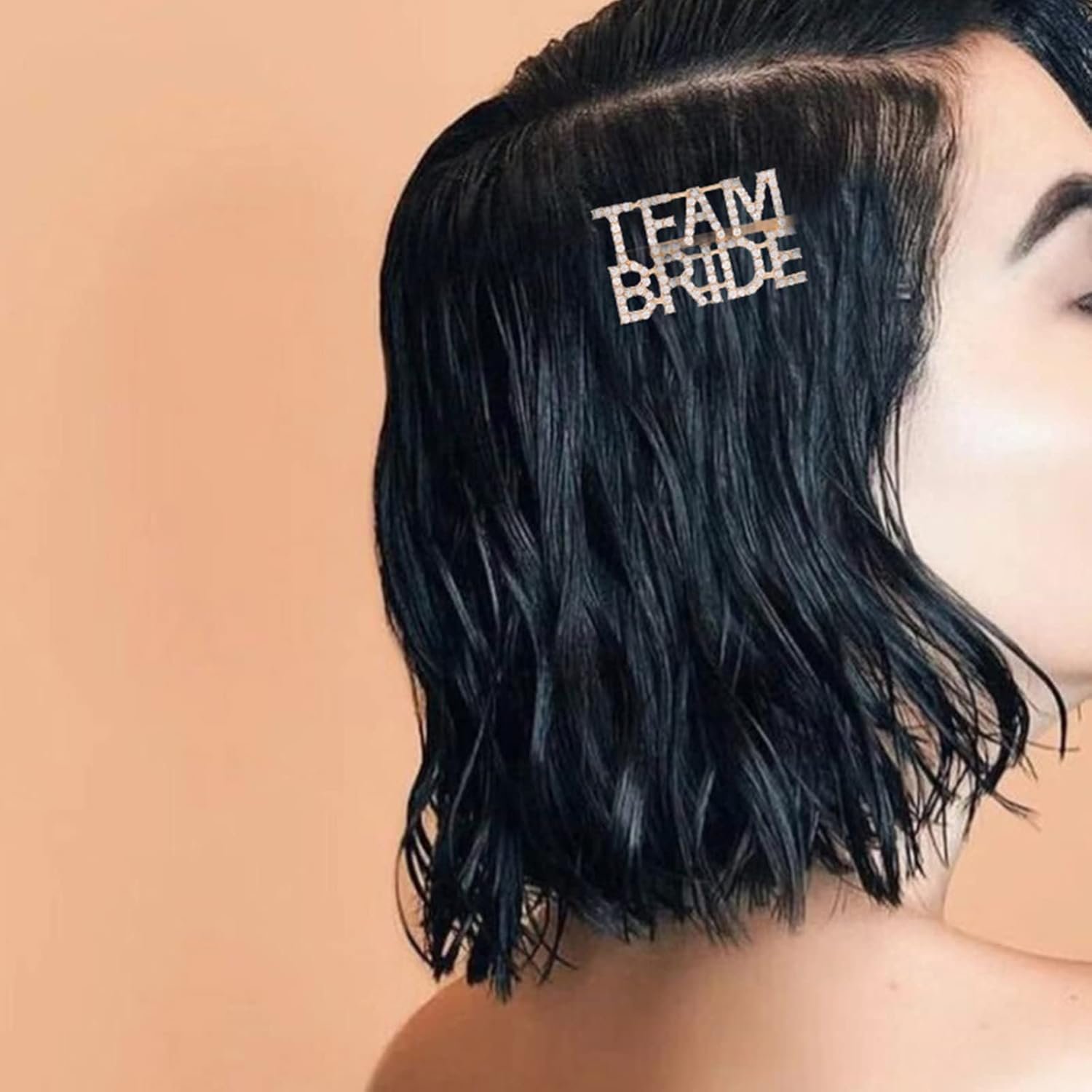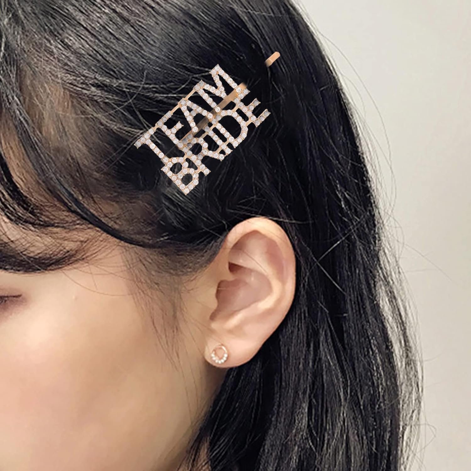 Este gancho metálico “TEAM BRIDE” con pedrería brillante es el toque final perfecto para una despedida con estilo, brillo y actitud.