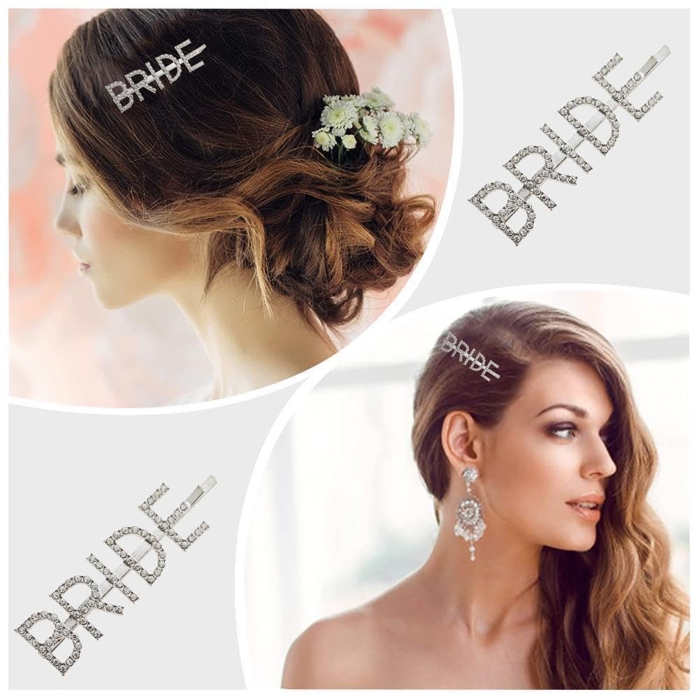 Este elegante clip de cabello con la palabra “BRIDE” en letras grandes con cristales es el accesorio ideal para realzar cualquier look nupcial — ya sea en la despedida, la sesión de fotos o incluso el gran día.
