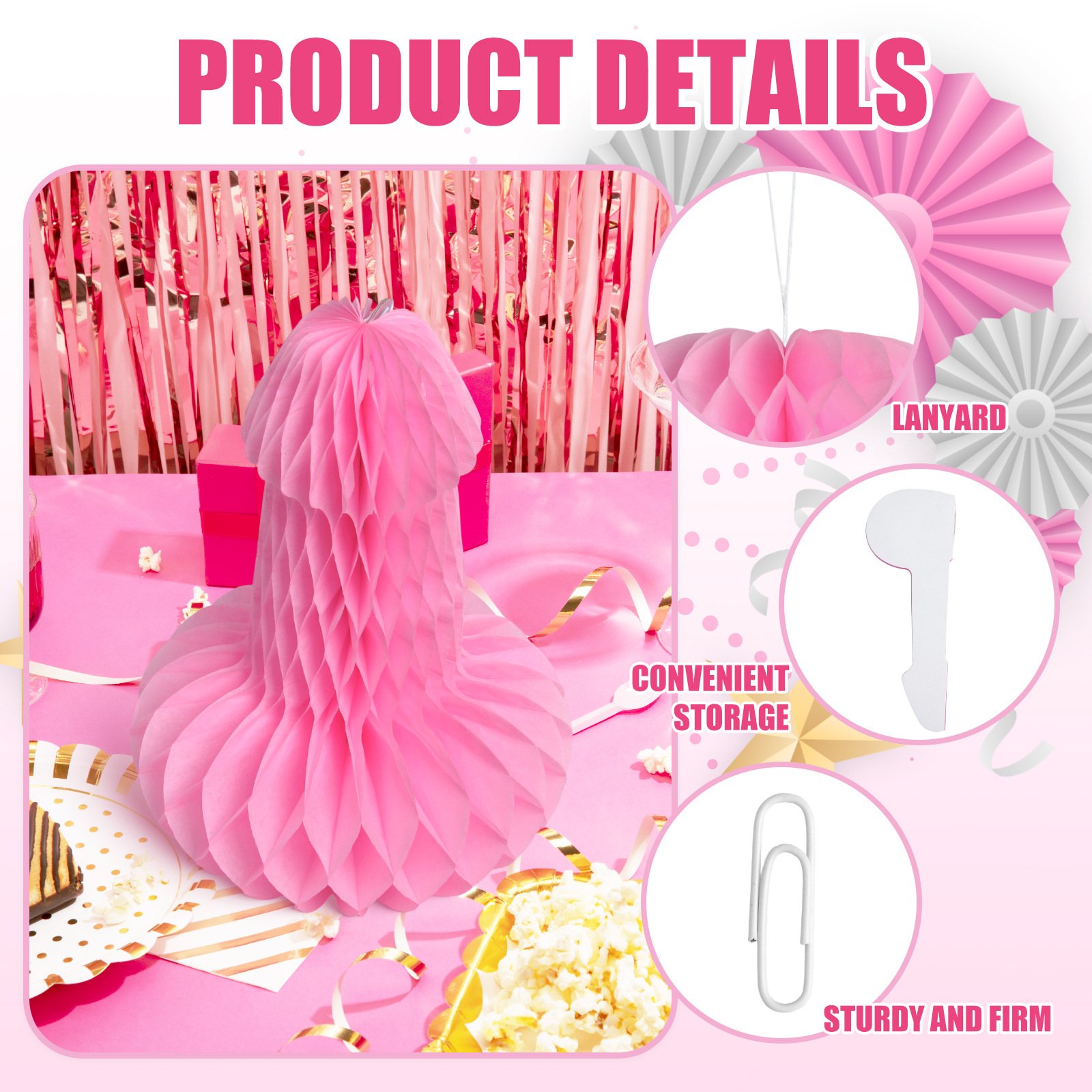 Este decorativo con forma atrevida y textura tipo panal está hecho para robar miradas, sacar risas y provocar conversaciones. Se despliega tipo acordeón en papel de nido de abeja, creando una figura voluptuosa, ligera y firme (sí, firme 🫢).