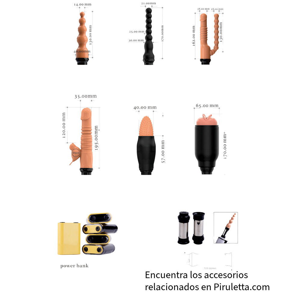– Funciones: 3 velocidades, 4 modos de movimiento – Ángulo y altura regulable – Compatible con múltiples accesorios (busca todos los accesorios de Toque Secretto) – Peso: 3.2 kg – Tamaño base (cerrada): 45 x 35 cm – Tamaño brazo extendido: hasta 25 cm – Velocidad de empuje: hasta 240 veces por minuto – Ruido: < 50dB (nivel bajo, casi silencioso) – Cuidados y limpieza: Limpiar con paño húmedo y jabón neutro. Usar lubricante base agua – No sumergir el motor – Incluye adaptador de corriente y control manual